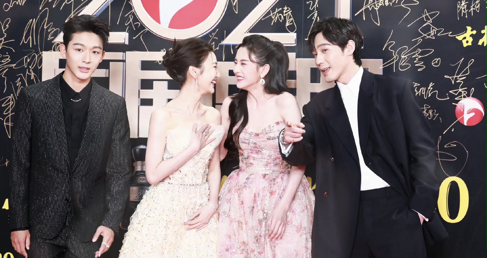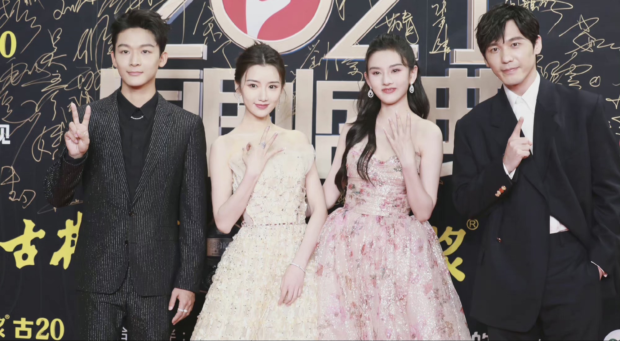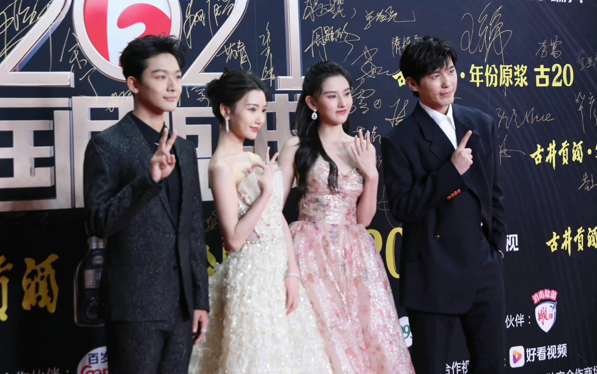 在合影环节,“乔家天团“们还用手势比出本人在家里的排行,果真一家人要零零齐齐。媒体拍到的摆造型合影时几人互动的霎时也太有爱了。终究是戏里戏外联系都十分好的“一家人”。
