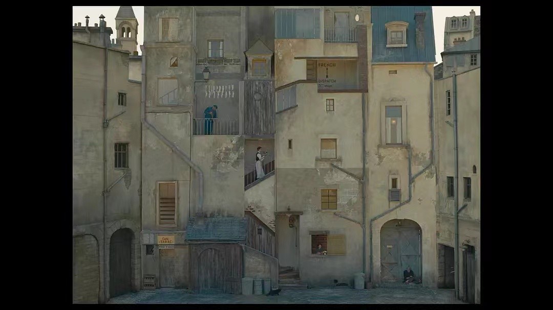 就拿《法兰西特派》这部影片来说,在这部影片中可以发现所有属于韦斯·安德森式的美学风格。不管是对称构图还是马卡龙式的配色,导演都将他用到了极致,整个画面饱满到塞不下其他任何东西。