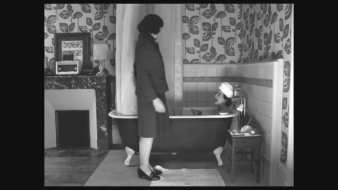两人一个在浴缸中,一个在洗手台前探讨反抗宣言的问题,就在记者要看齐费里尼的宣言时,甜茶以赤裸的姿态从浴缸跑到洗手台前,递给记者克雷蒙茨。