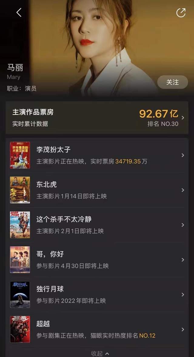 马丽主演作品票房目前已达到92.67亿,距离她成为百亿女演员只有一步之遥。