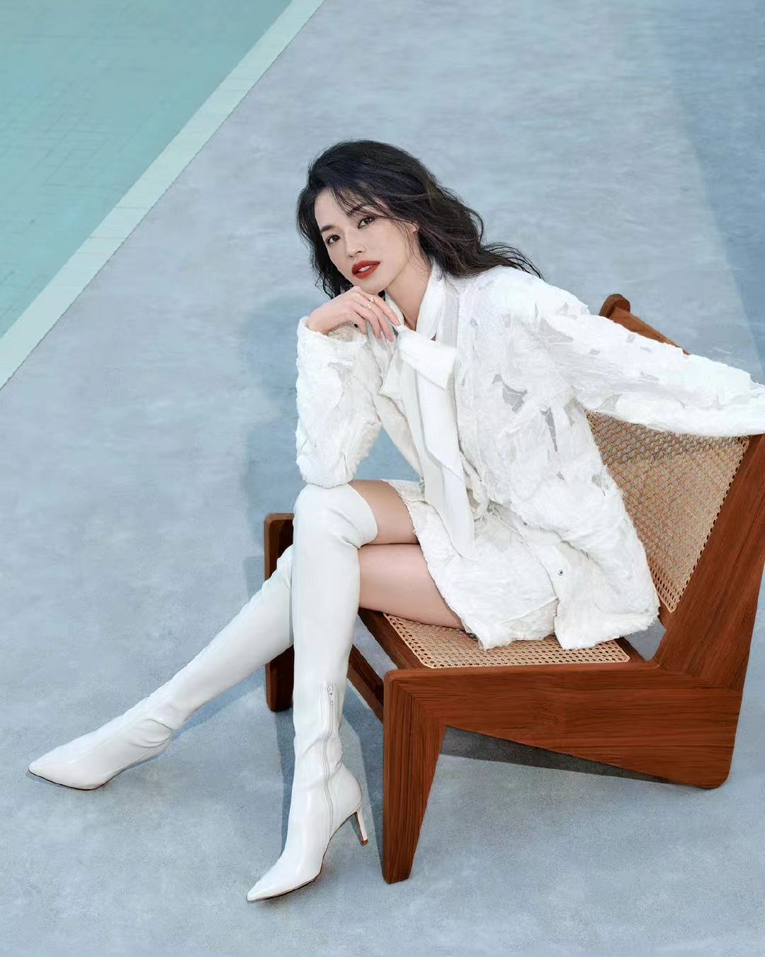 这组照片的摄影师可以说是特别很是的斗胆勇敢,不论是在服装的选取上还是色彩的使用上都形形色色,也正是这形形色色,舒淇在这组照片中的高级感就被施展阐发出来了,丝毫看不出她今年已经45岁了。
