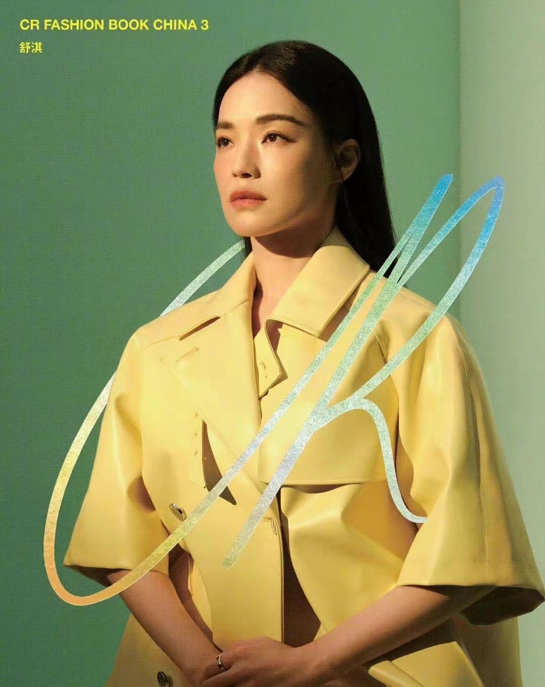 在另一张照片中,舒淇穿着亮黄色的中袖外套,整小我私家侧着坐,眼睛就看向前方,背景被处置惩罚成了绿色,属于模特的高级感立马就出来了。