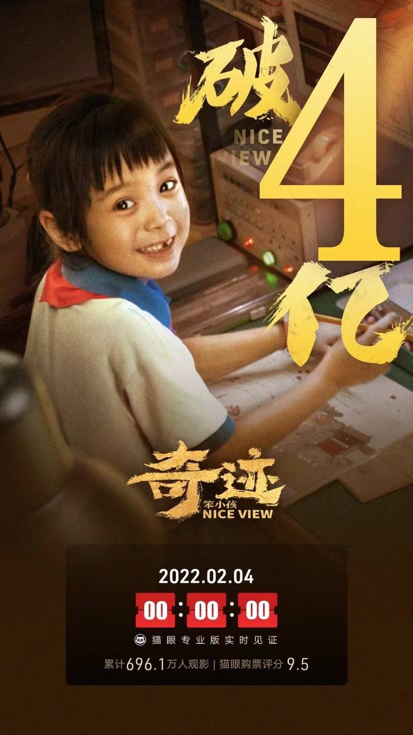 《奇迹·笨小孩》在2月4日0时的时候也破了4亿,位居春节新片票房排行榜的第3名。