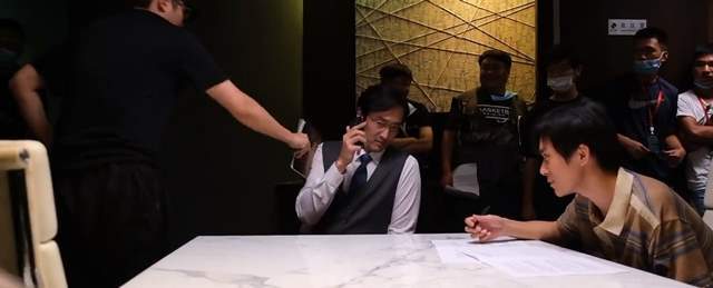王传君愣了一下后露出惊喜的表情,导演看到这一幕无奈地趴在桌子上,恶作剧的警告王传君“调戏主演我告诉你” “你好好的”,并伸手拿书打他,易烊千玺在旁边偷笑。