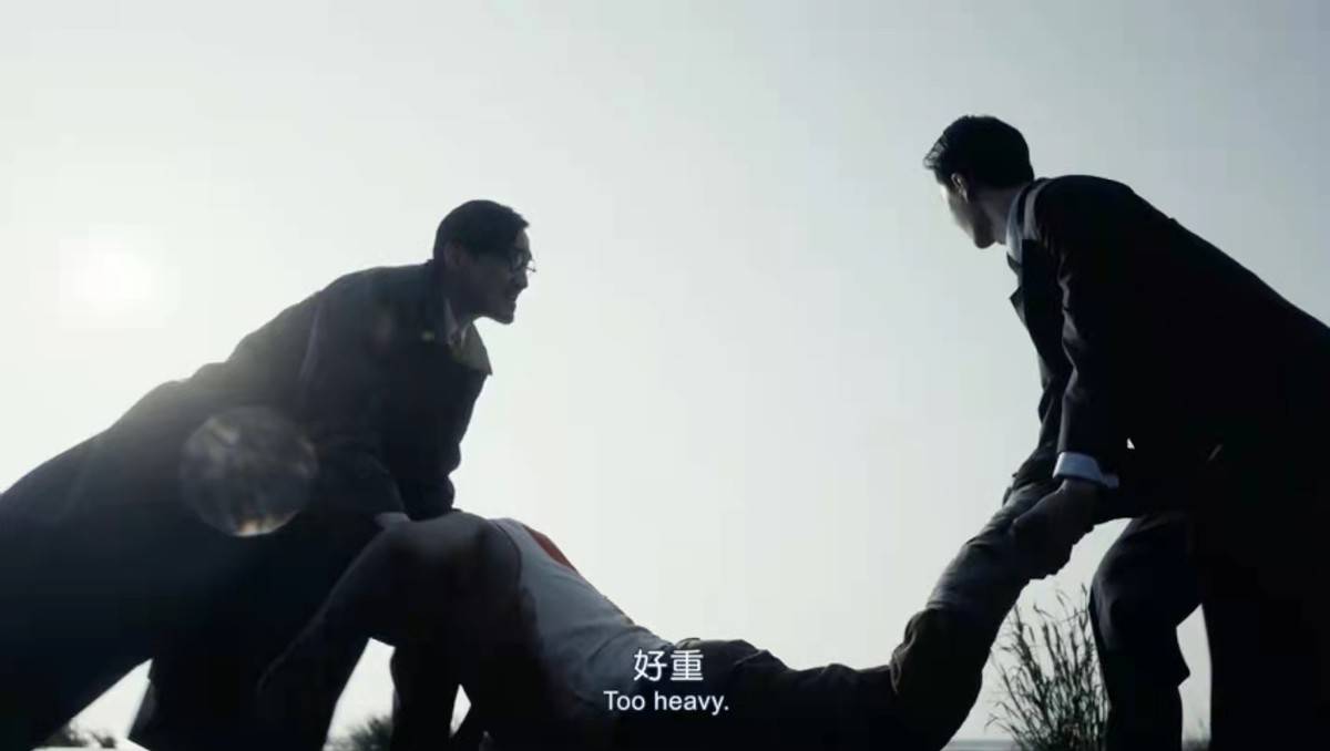 王传君和王一博饰演的角色穿着体面,西装革履,却干起了抛尸的活。他们两个将尸体抬了起来想要扔到海里,却在抬起来之后一个嫌重,一个嫌远,最后双双撂挑子不干了,充斥着黑色幽默。