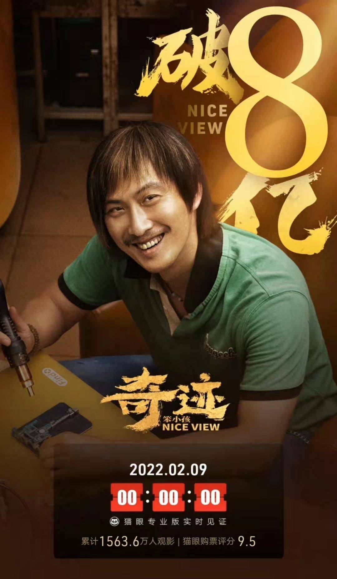 根据猫眼专业版实时见证,截止到2月9日00:00,春节档电影《奇迹·笨小孩》自大岁首年月一上映以来总票房突破8亿!恭喜电影《奇迹·笨小孩》!