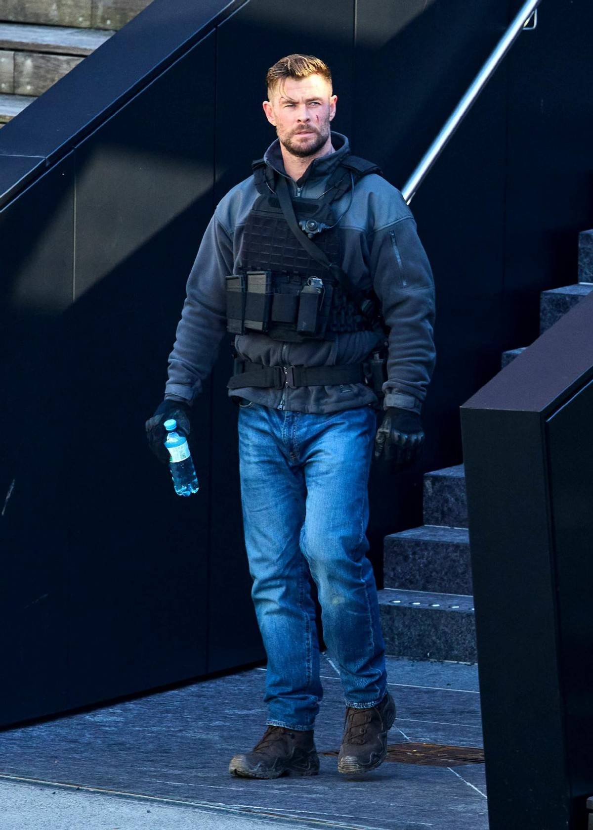 2月10日,有网友在某社交平台上分享了一组39岁的“锤哥”克里斯·海姆斯沃斯在维也纳拍摄新片《惊天营救2》的片场照。