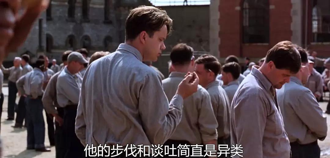这一点,从他刚到肖申克的时候,Red就发现了,“他的步伐和谈吐简直是异类,他像在公园散步,无忧无虑,仿佛身披隐形衣。”