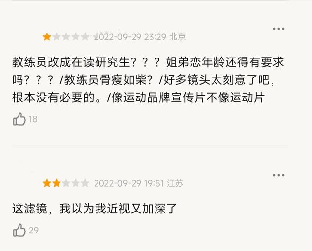 当然还有一些评论是直指磨皮严重的,说这毕竟是跟运动有关的影视,磨皮之后总让人感觉是在看青春偶像剧。