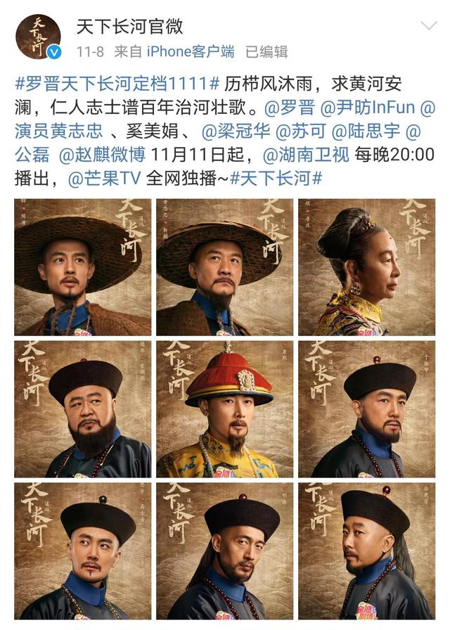不甘寂寞的历史好剧《天下长河》官宣定档11月11日。《天下长河》是由张挺执导,罗晋、尹昉领衔主演,黄志忠特邀主演的古装历史剧,该剧于2022年11月11日在湖南卫视播出,并在芒果TV同步播出。