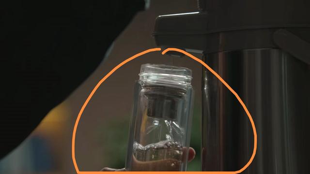 杨柳看到孙和平来找自己,吃完泡面给自己淡定地给自己倒了一杯水,但是镜头一转,倒得多半杯水只剩下一点了,镜头再一转,水又回来了。