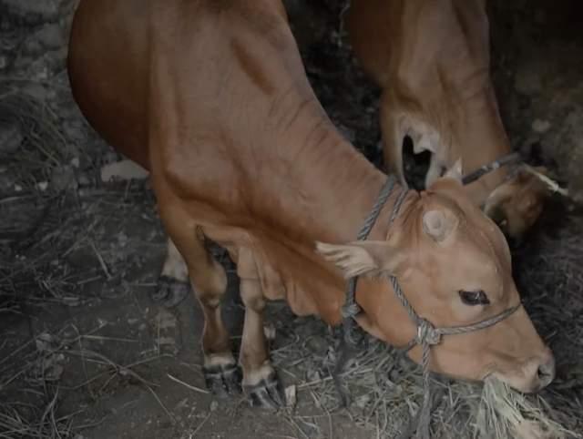 原本家里养了两头牛,一头被牛棚倒塌压死了,还有一头跑到山上的悬崖去,导致大哥的腿也被摔断了。