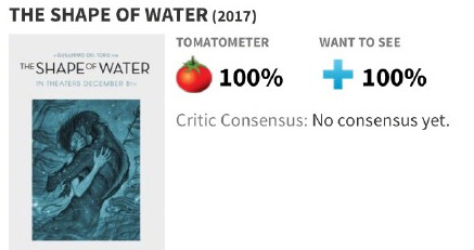 由美国福斯探照灯公司出品的奇特剧情片《水形物语》今天不日毕竟曝出了先期评价,本片在烂番茄上的评分真实令人惊讶了一下,目前烂番茄评分为100%,假设本片在烂番茄上还是保持如此评分,可以说本片将会是今年的口碑之王了。