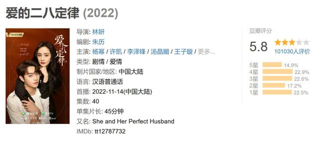 《爱的二八定律》在豆瓣的评分已开,5.8分,还没达到及格线。这分数,七嘴八舌。其实无论高低,都是吃..