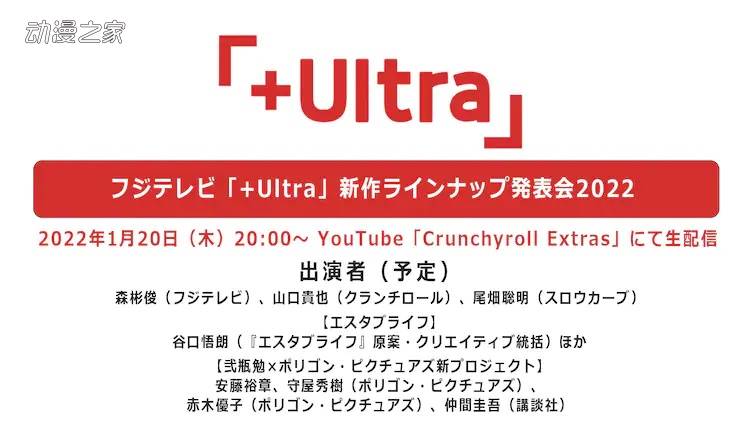 日本富士电视台的动画节目“+Ultra”,将于1月20日在YouTube的Crunchyroll..