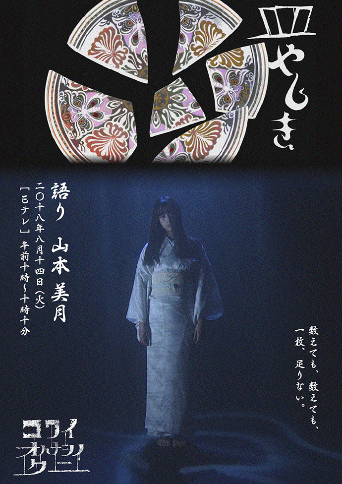 NHK制作的三集10分钟恐怖独角短剧   由三位年轻演员们,结合最新的声光效果和立体投影,重新讲述日本家喻户晓的三个恐怖怪谈。   8/13 本乡奏多×无耳芳一   8/14 山本美月×皿屋敷   8/15 矢本悠马×置行堀